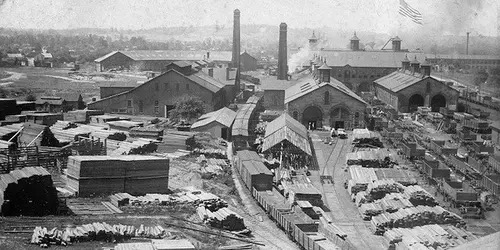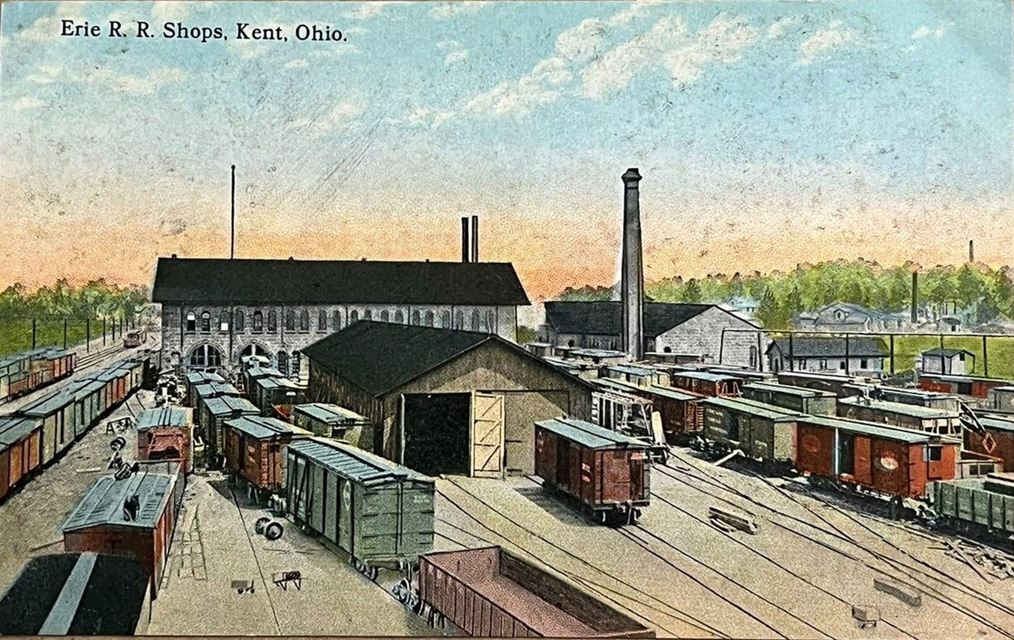 1874 lithograph of the Atlantic & Great Western RR shops that was created for the Centennial Atlas of Portage County.